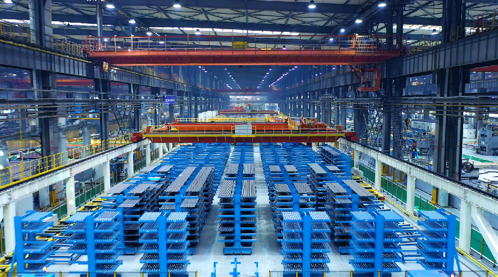 水冷壁数字化工厂融合了工业互联网、工业机器人、机器视觉、大数据及人工智能等先进技术,试运行以来,设备数字化率达到100%,人均产值提升5倍,0.9米每分钟跑屏速度、20条焊缝同步跟踪、序间0行车转运等数据被不断刷新,为生产提速、高效交付提供了坚实支撑。