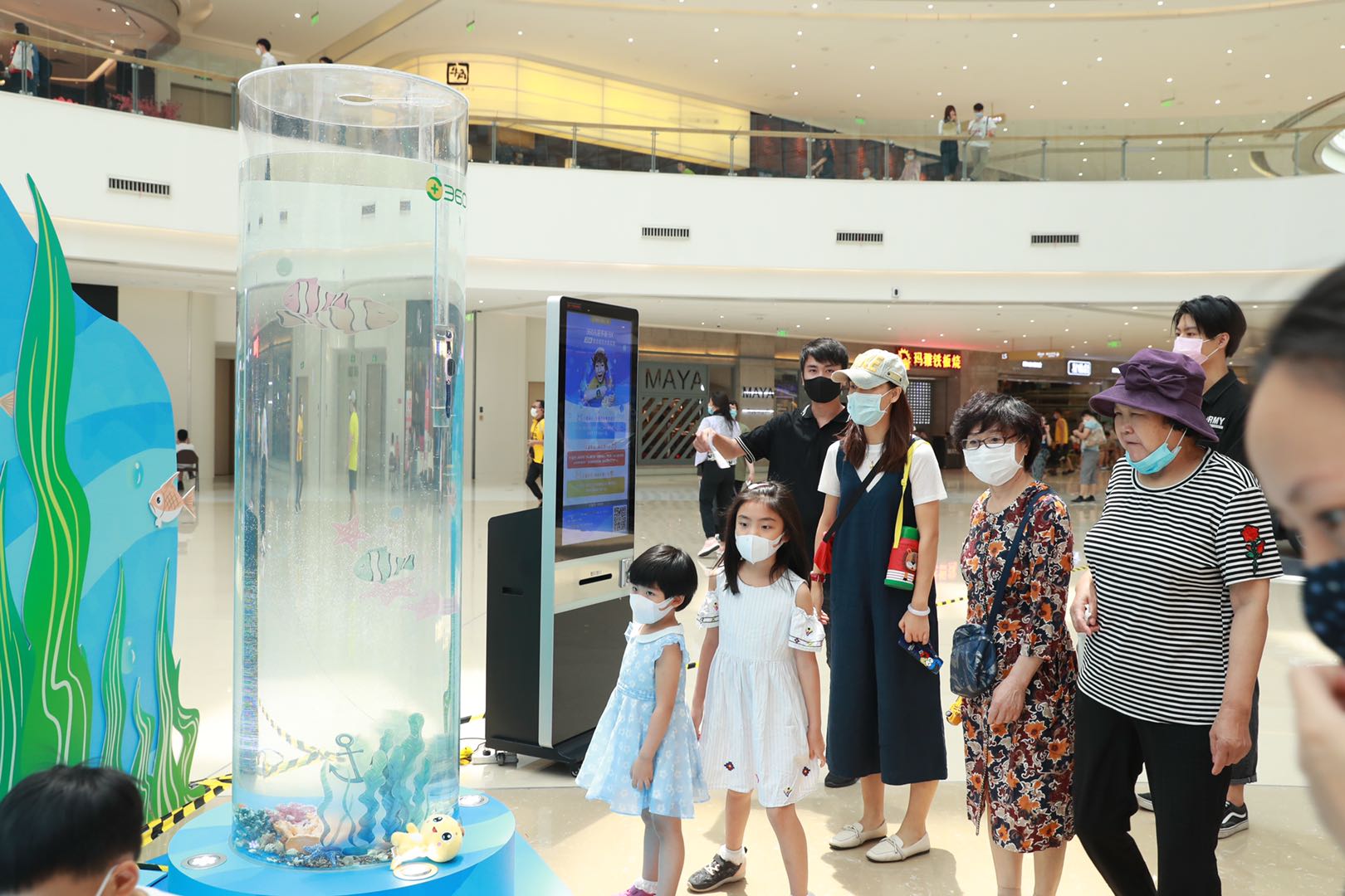 到达现场后,家长和孩子首先可以免费参观科技范儿十足的场馆。走到场馆的指定位置上,360儿童电话手表9X会在水下给小朋友拍摄照片。事实上,小朋友们不仅仅惊叹于这款儿童电话手表的水下拍照效果,他们还更想知道它是如何做到的。