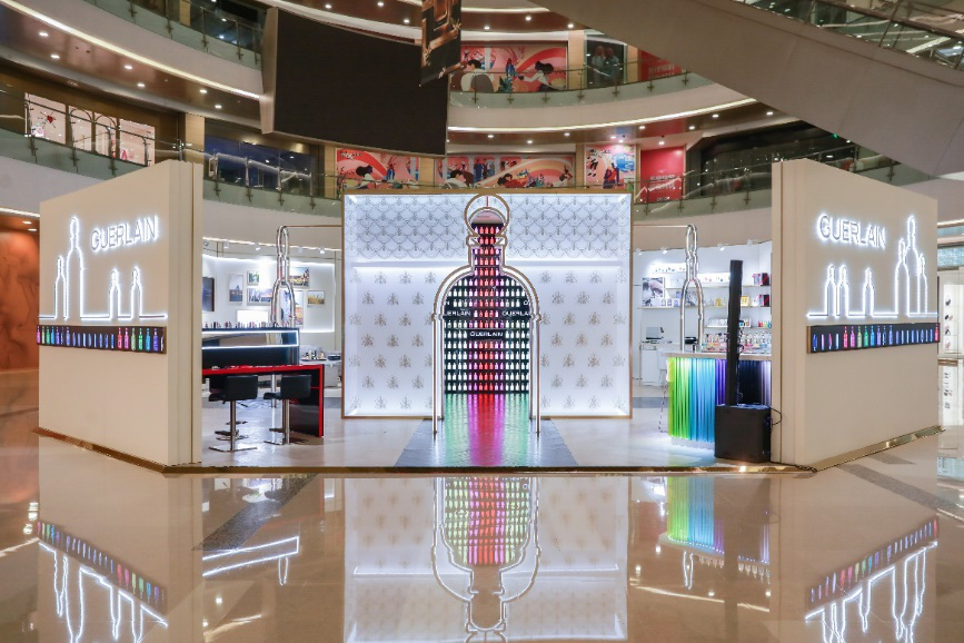 图:法国娇兰彩色蜂印瓶陈列展台绽放王室尊贵风采