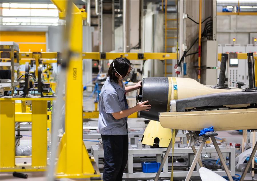 安泰复材车间里,多个项目的复合材料机体正在生产装配中