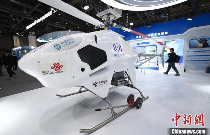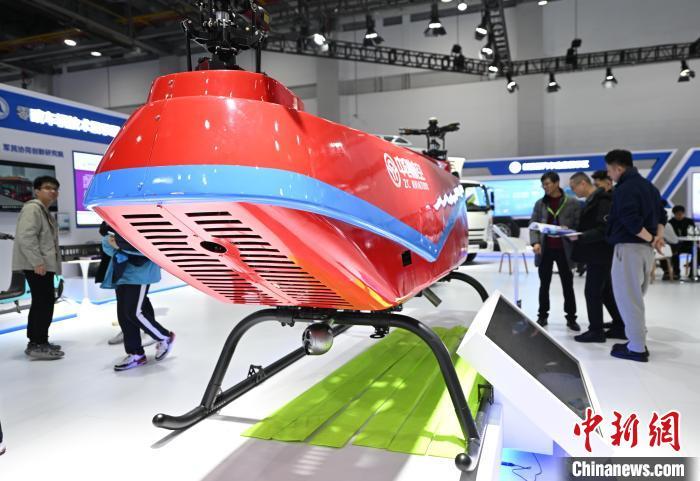 12月5日,用于森林消防等领域的无人直升机吸引参观者。中新社记者 王刚 摄