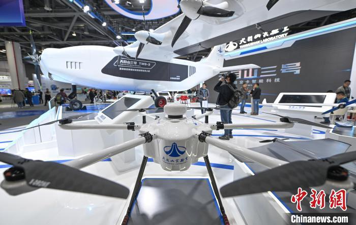 12月5日,天目山实验室的氢能无人机吸引参观者。中新社记者 王刚 摄