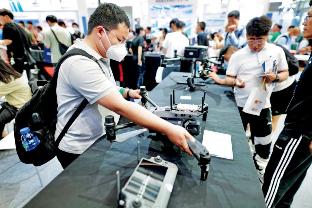 2023年6月2日,第七届世界无人机大会暨第八届深圳国际无人机展览会上,观众参观大疆无人机。摄影/本刊记者 陈文
