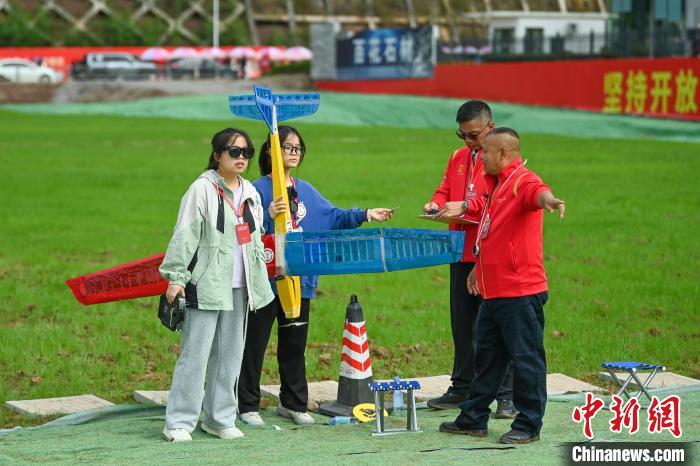 10月14日,四川巴中,赛场上参赛选手正放飞参赛飞机。当日,2024年中国国际飞行器设计挑战赛总决赛暨科研类全国航空航天模型锦标赛比赛在四川省巴中市拉开序幕,参赛选手将在赛场上一决高下。中国国际飞行器设计挑战赛是目前中国唯一集飞行器设计、制造、飞行与控制于一体的面向全国高校和高中学生的赛事。中新社记者 刘忠俊 摄