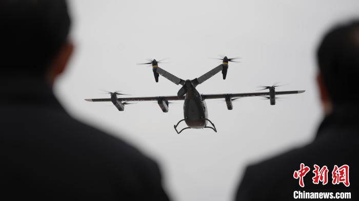 2023年12月29日,沃飞长空AE200型号电动垂直起降飞行器(eVTOL)适航技术验证机首飞,图为该验证机正面。(沃飞长空供图)