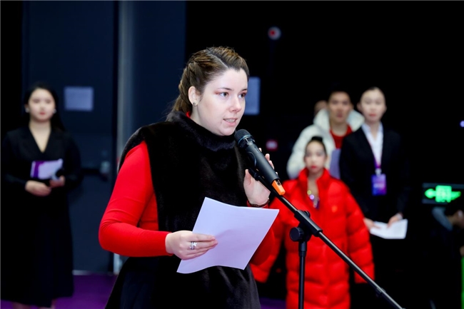 北京俄罗斯文化中心俄语与体育部主任阿廖什基纳·朱莉娅·弗拉基米罗夫娜致开幕辞