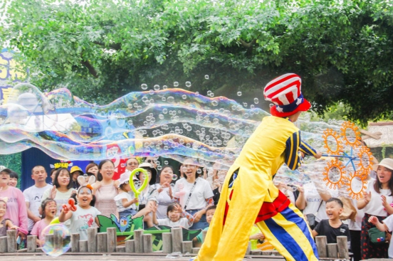 ▲天津方特欢乐世界的“泡泡之夏”活动让人们乐在其中。