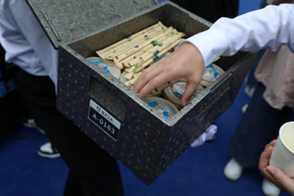 一架满载咖啡的运输型无人机,从位于宁波江北万达广场的无人机物流枢纽起飞,5分钟后,精准地降落在中海富华里社区的收货机场点位上。工作人员从无人机的“肚子”里取出装有咖啡的容纳箱,冰爽新鲜。
