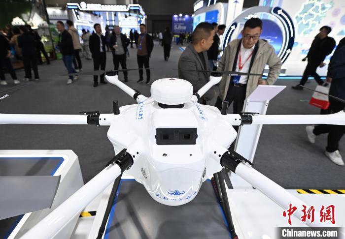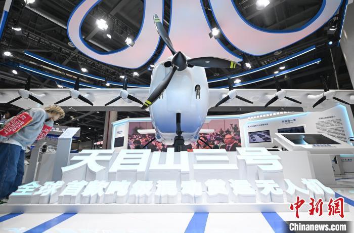 12月5日,天目山实验室的氢能无人机吸引参观者。中新社记者 王刚 摄
