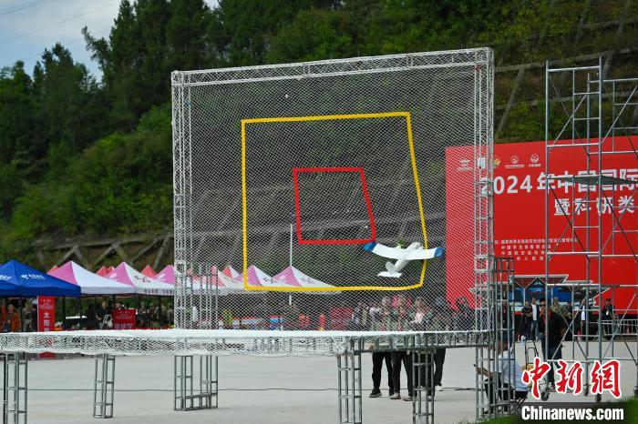 10月14日,四川巴中,模拟舰载撞网回收比赛现场一架飞机成功撞网。当日,2024年中国国际飞行器设计挑战赛总决赛暨科研类全国航空航天模型锦标赛比赛在四川省巴中市拉开序幕,参赛选手将在赛场上一决高下。中国国际飞行器设计挑战赛是目前中国唯一集飞行器设计、制造、飞行与控制于一体的面向全国高校和高中学生的赛事。中新社记者 刘忠俊 摄